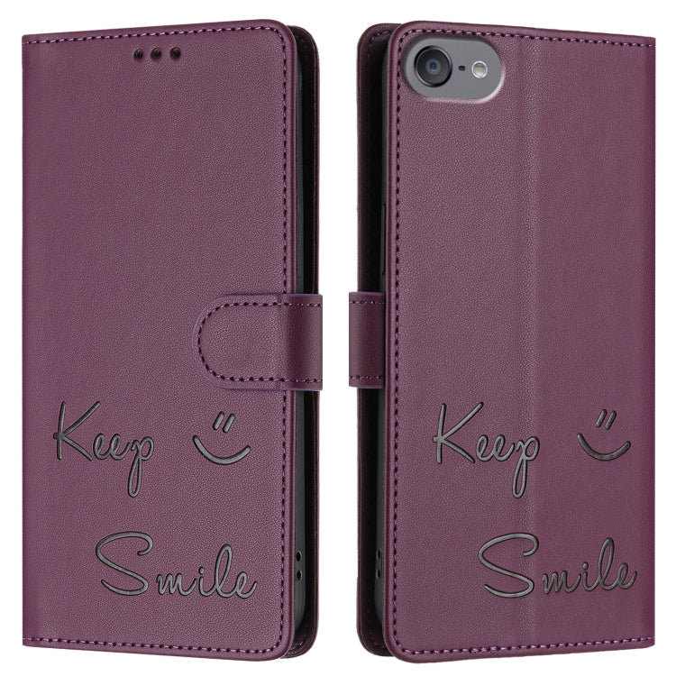 Funda de Cuero Rfid para iPod Touch 7/6/5 con Relieve Sonriente (Violeta)