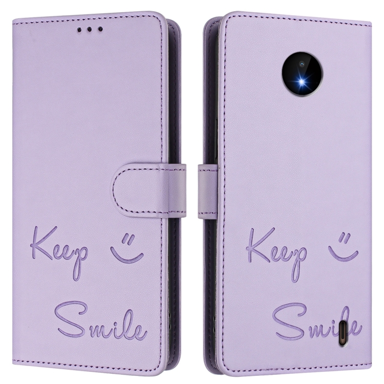 Funda de Cuero Rfid con Relieve Sonriente para Nokia C10/C20 (Morado Claro)