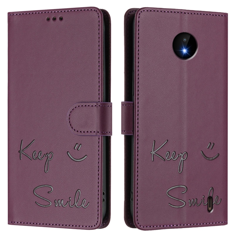 Funda de Cuero Rfid con Relieve Sonriente para Nokia C10/C20 (Violeta)