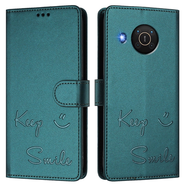 Funda de Cuero Rfid con Relieve Sonriente para Nokia X20/X10 (Verde Pavo Real)