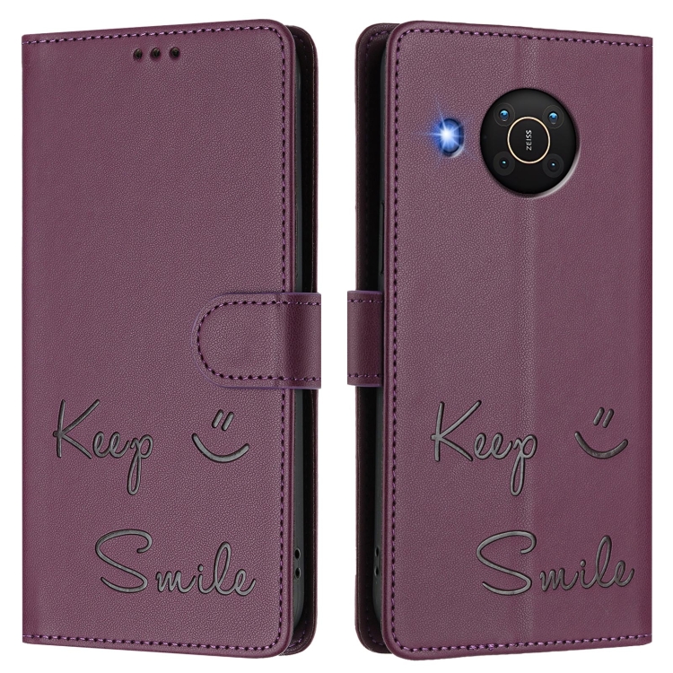Funda de Cuero Rfid con Relieve Sonriente para Nokia X20/X10 (Violeta)