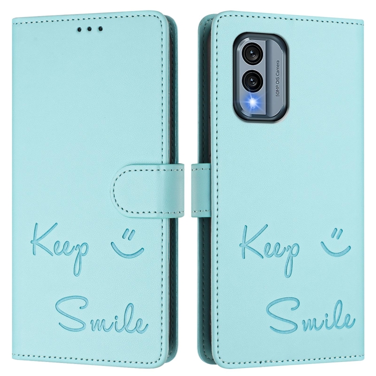 Funda de Cuero Rfid con Relieve Sonriente para Nokia X30 5G (Verde Menta)
