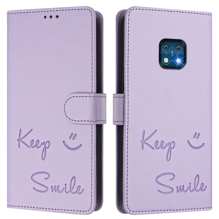 Funda de Cuero Rfid con Relieve Sonriente para Nokia Xr20 (Morado Claro)