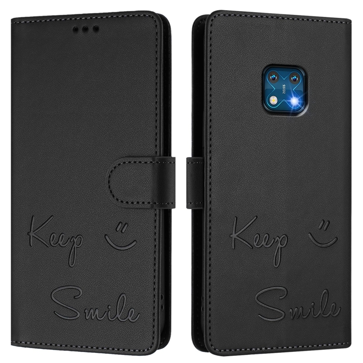 Funda de Cuero Rfid con Relieve Sonriente para Nokia Xr20 (Negra)
