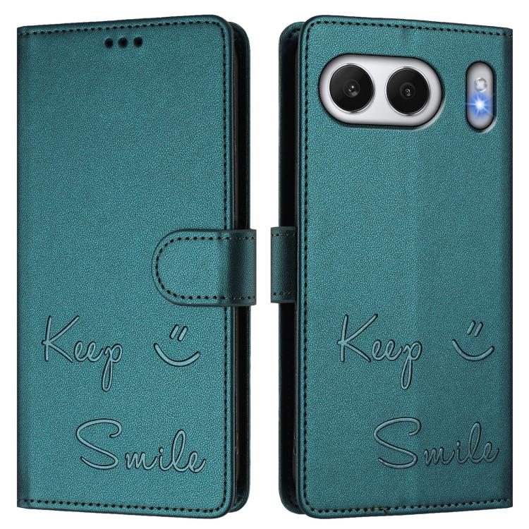 Funda de Cuero Rfid con Relieve Sonriente para OnePlus Nord 4 5G (Verde Pavo Real)