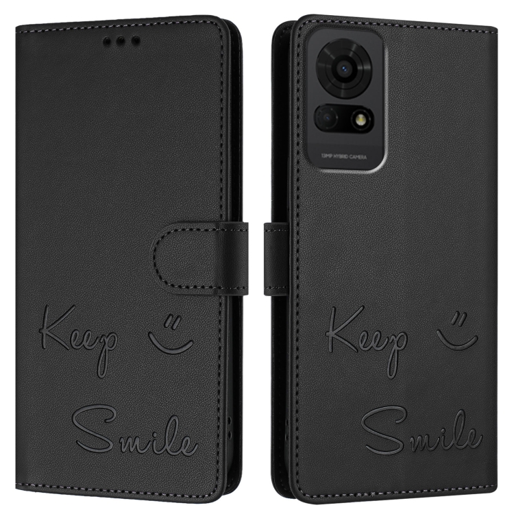 Funda de Cuero Rfid con Relieve Sonriente para TCL 50 Le 5G (Negra)