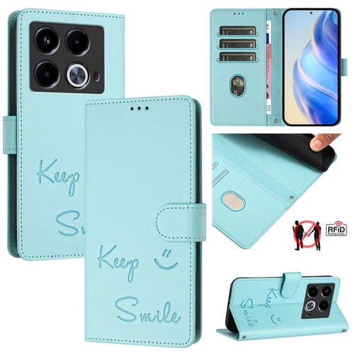Funda de Cuero Rfid con Relieve Sonriente para Teléfono Infinix Note 40 4G (Verde Menta)