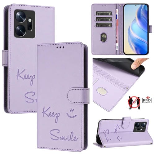 Funda de Cuero Rfid con Relieve Sonriente para Teléfono Infinix Zero 20 (Morado Claro)