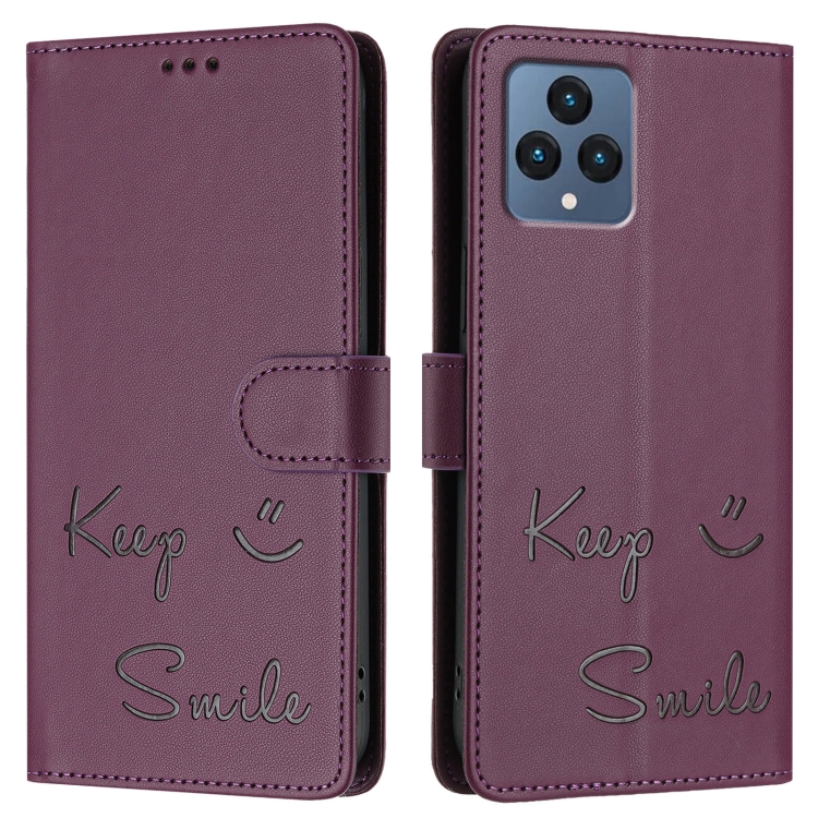 Funda de Cuero Rfid con Relieve Sonriente para Teléfono T-Mobile Revvl 6/6X 5G (Violeta)