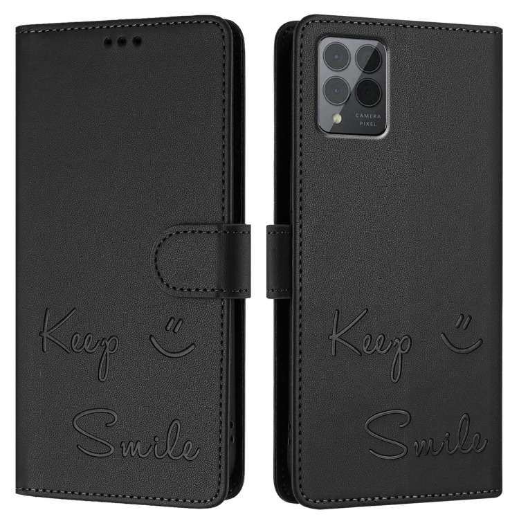 Funda de Cuero Rfid con Relieve Sonriente para Teléfono T-Mobile Revvl 6 Pro / 6X Pro 5G (Negra)