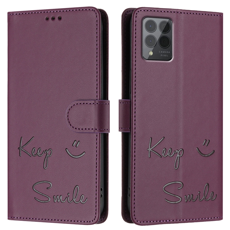 Funda de Cuero Rfid con Relieve Sonriente para Teléfono T-Mobile Revvl 6 Pro / 6X Pro 5G (Violeta)