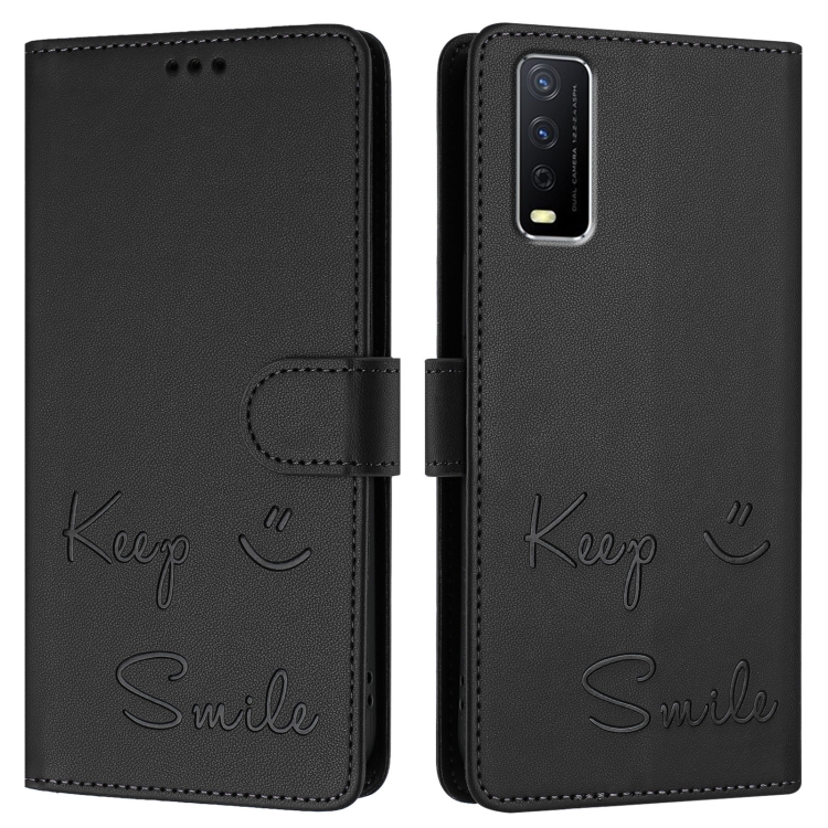 Funda de Cuero Rfid con Relieve Sonriente para Vivo Y20A/Y20G/Y12A (Negra)
