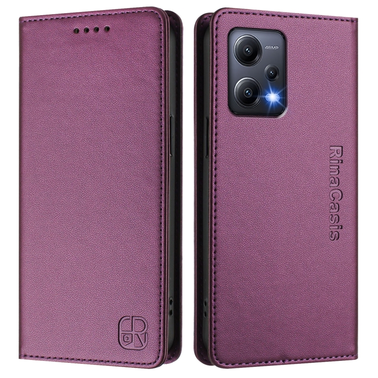 Funda de Cuero Rfid con Succión Magnética y Doble Pliegue para Redmi Note 12 5G India/Xiaomi Poco X5 Rc01 (Violeta)