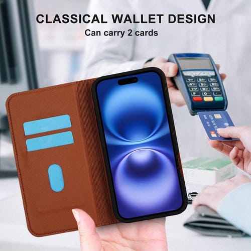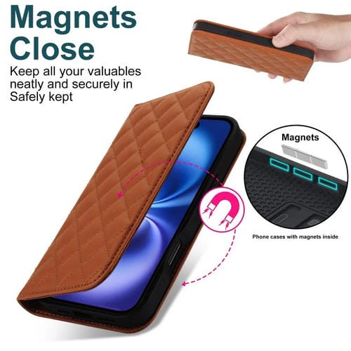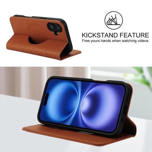 Funda de cuero Rhombic MagSafe RFID antirrobo para iPhone 17 (marrón)