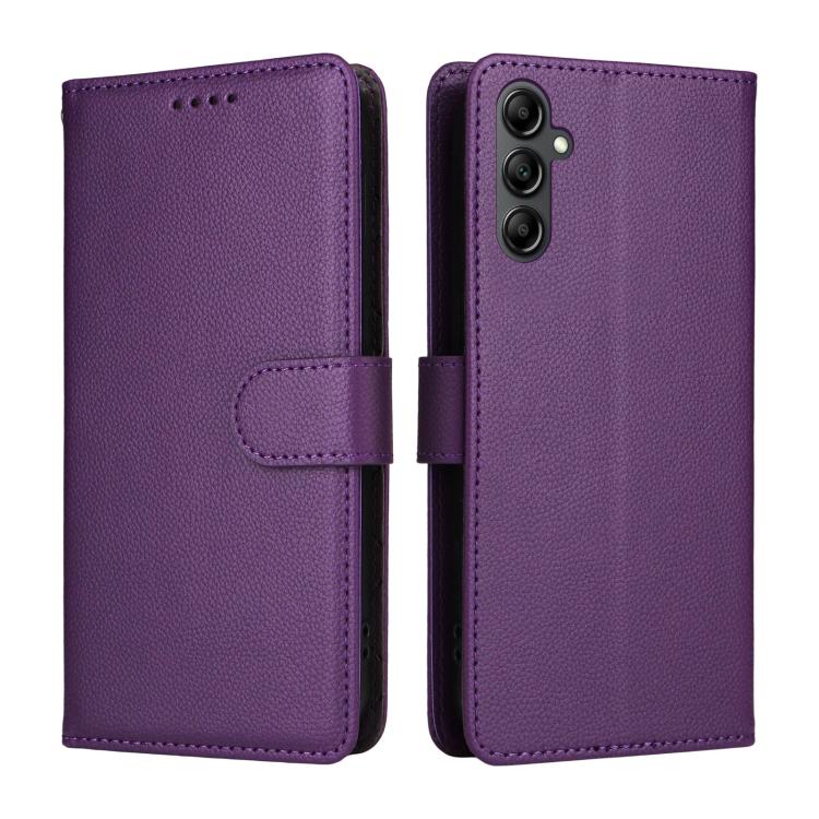 Funda de cuero tipo billetera con bloqueo RFID para Samsung Galaxy A14 4G/5G, textura Litchi, para 3 tarjetas (morado)