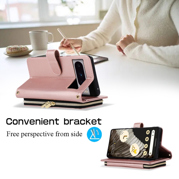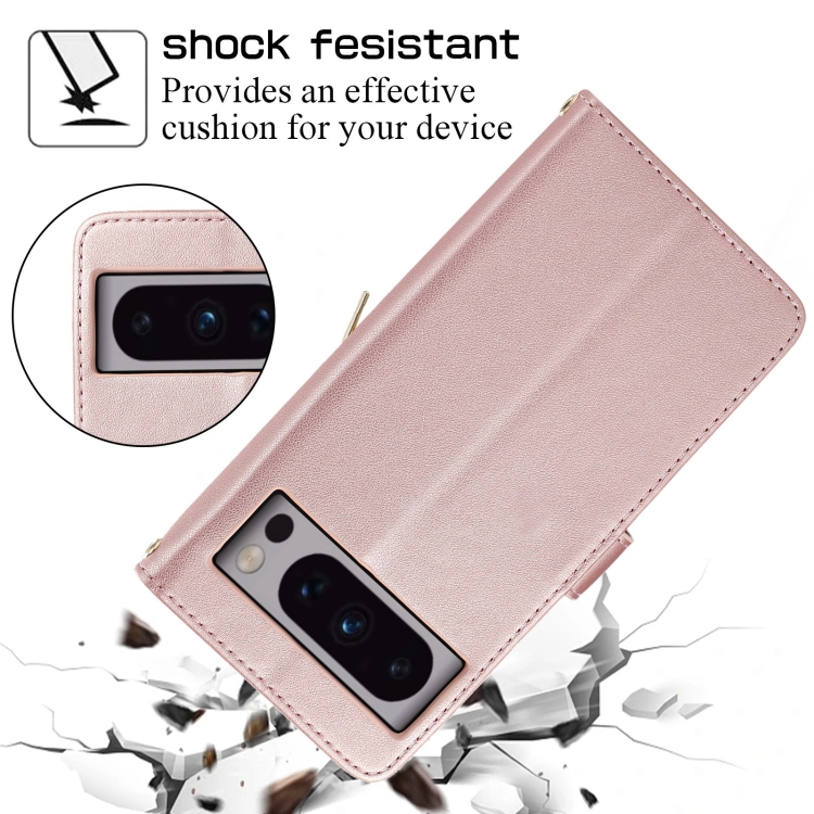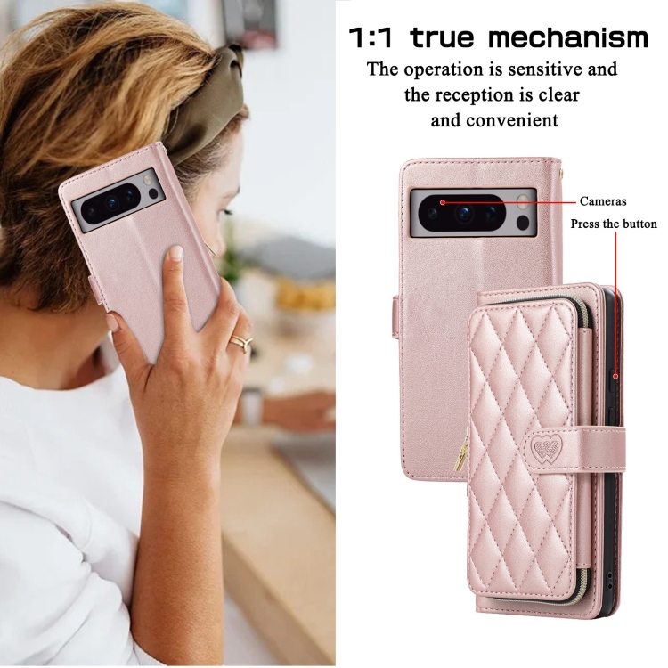 Funda de Cuero Tipo Billetera con Cremallera Completa y Diseño Rombal para Google Pixel 8 Pro (Oro Rosa)