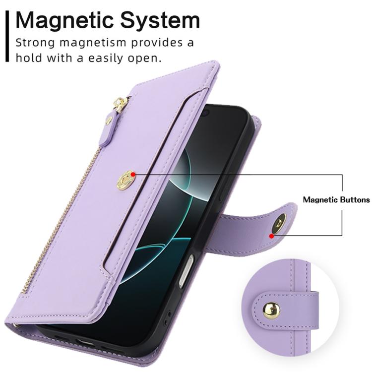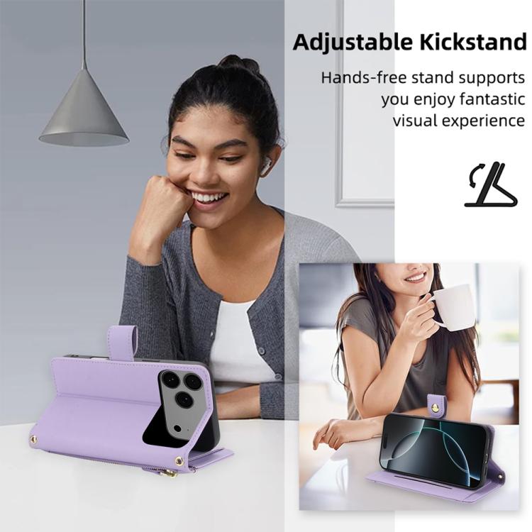 Funda de cuero tipo billetera con cremallera y siete ranuras para tarjetas para iPhone 17 Pro (morado claro)