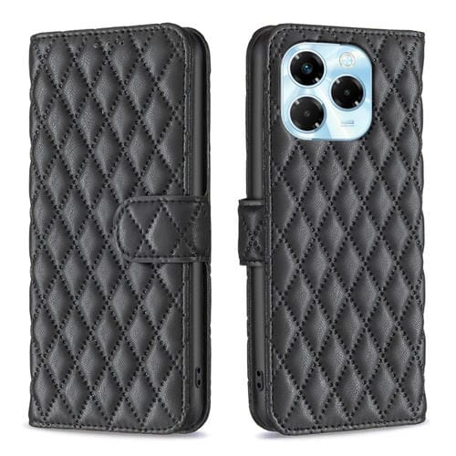 Funda Cuero Tipo Billetera con Tapa Diseño Celosía Diamante para Infinix Note 40X 5G (Negra)
