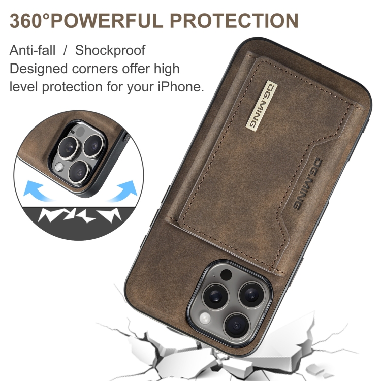 Funda Tipo Billetera Dg.Ming M2 Series para iPhone 16 Pro Max Tres Pliegues (Café)