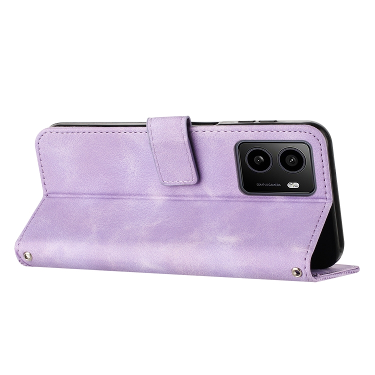 Funda de Cuero Triangular con Cordón Largo para Teléfono Hmd Pulse Pro Dream (Morado)