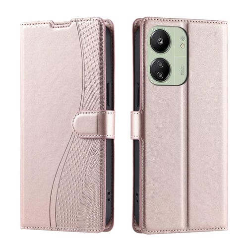 Funda de Cuero Ultrafina con Puntos de Voltaje Global para Xiaomi Poco M6 5G/C65 (Oro Rosa)
