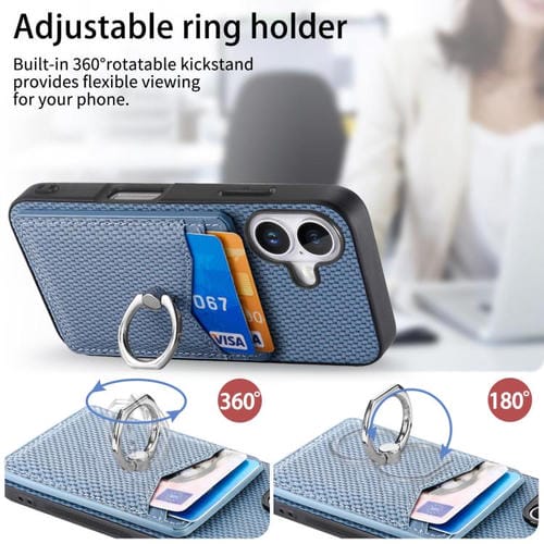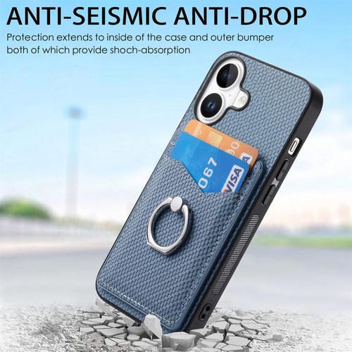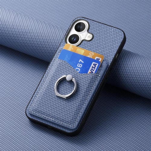 Funda de fibra de carbono con anillo para tarjeta para iPhone 17 (azul)