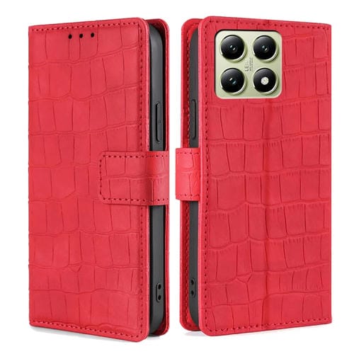 Funda De Piel Con Cierre Magnético Y Diseño De Cocodrilo Para Xiaomi 14T 5G (Rojo)