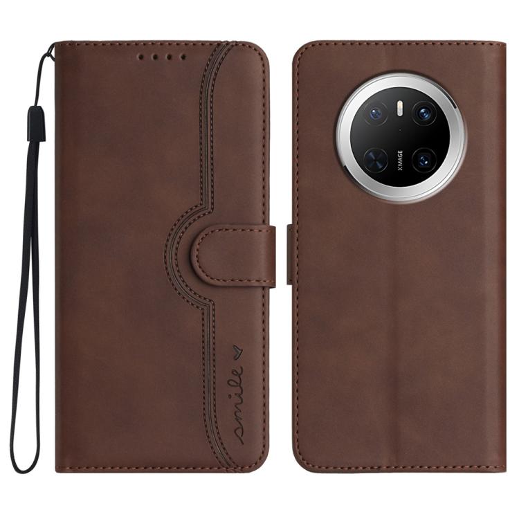Funda de Piel Huawei Mate 70 con Diseño de Corazón (Marrón)