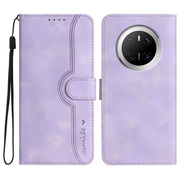 Funda de Piel Huawei Mate 70 con Diseño de Corazón (Morado)