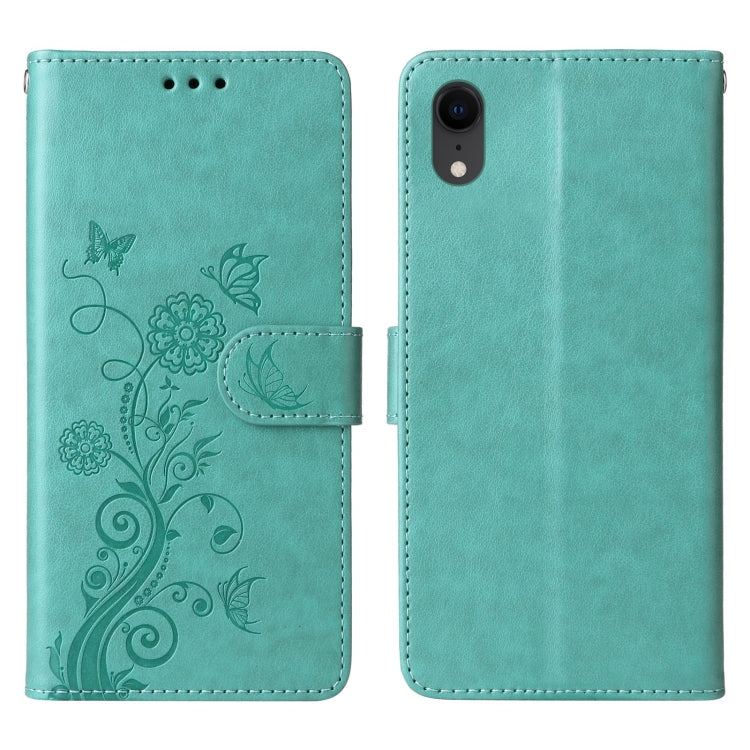 Funda de Piel para iPhone Xr Diseño Mariposas y Flores En Relieve (Verde)