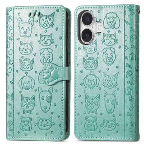 Funda de piel con estampado de gato y perro para iPhone 17 (verde)
