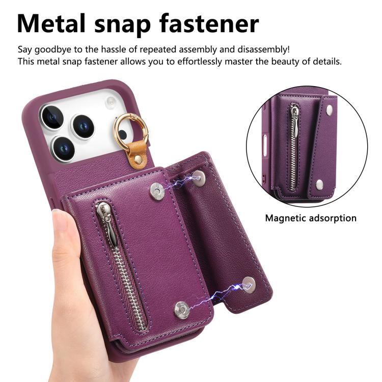 Funda de piel con hebilla en forma de D para iPhone 17 Pro (morada)