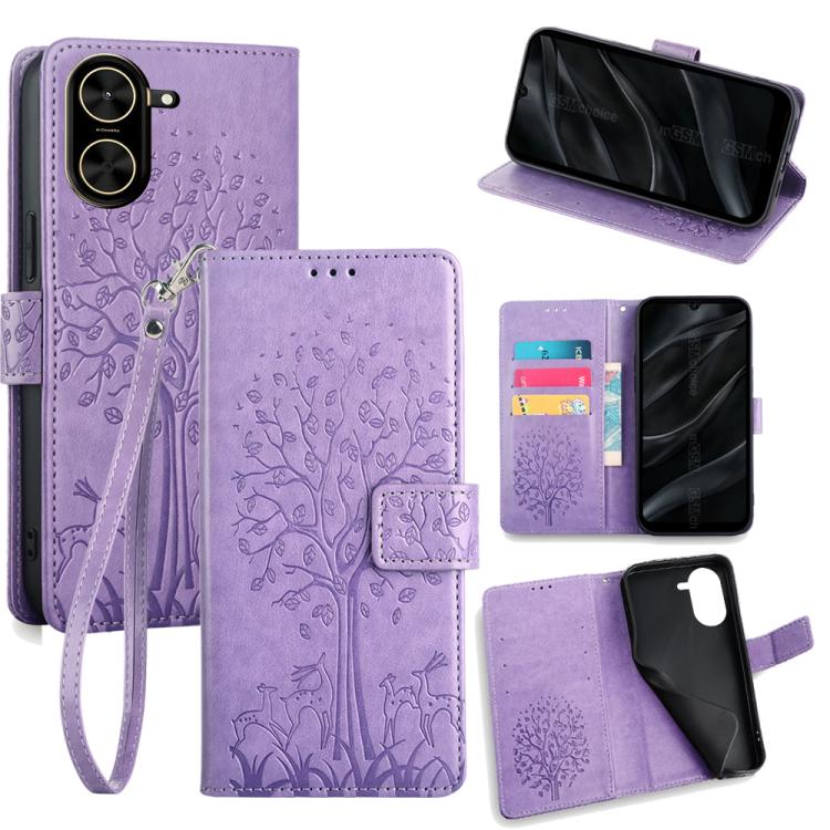 Funda de piel con relieve de árbol y ciervo para Redmi A5 4G (171,7 mm) (morado)
