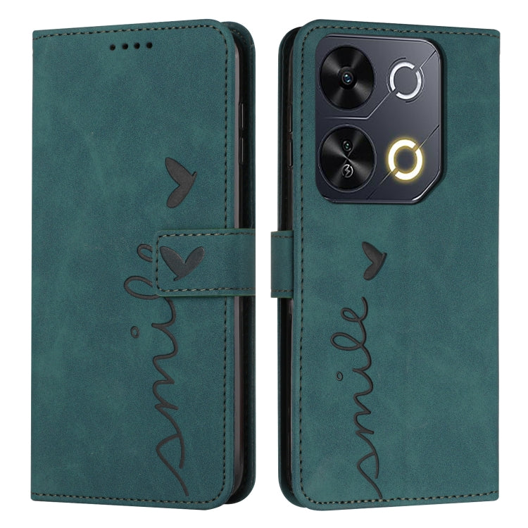 Funda de Piel con Relieve de Corazón y Cordón Largo para Teléfono Itel P65 (Verde)
