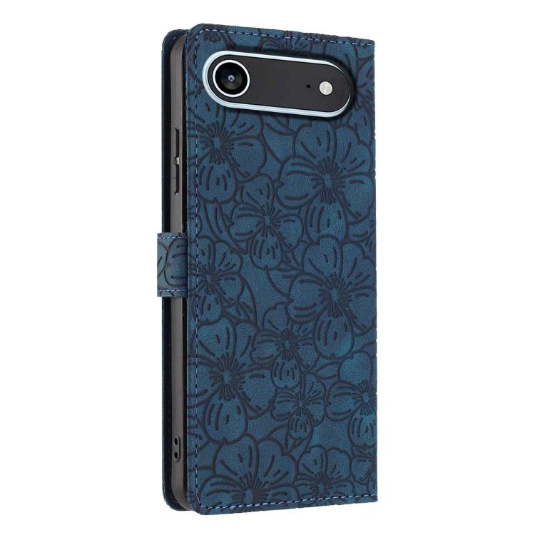 Funda de piel con relieve de flores de cerezo para iPhone Air (azul oscuro)