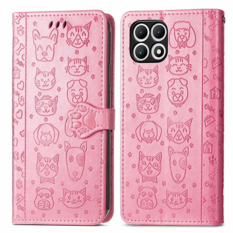 Funda de Piel con Relieve Gato y Perro para T-Mobile T Phone 2 5G (Rosa)