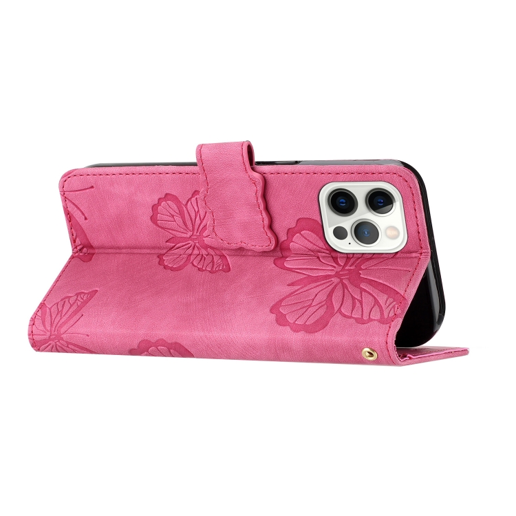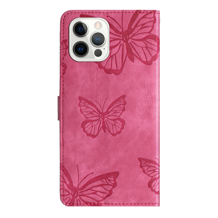Funda de Piel con Relieve de Mariposa para iPhone 16 Pro (Rosa Roja)