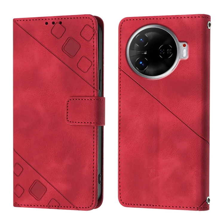 Funda de Piel con Relieve para Teléfono Tecno Camon 30 Pro 5G (Rojo)