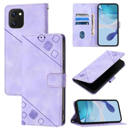 Funda de Piel con Relieve para Teléfono Umidigi Power 7 Power 7S (Morado Claro)