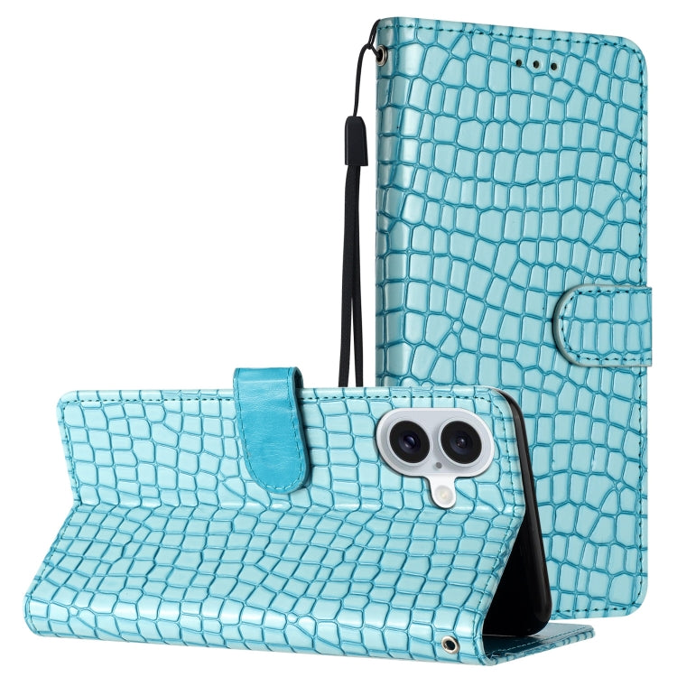 Funda de Piel con Tapa Horizontal con Textura de Cocodrilo para iPhone 16 (Azul Claro)