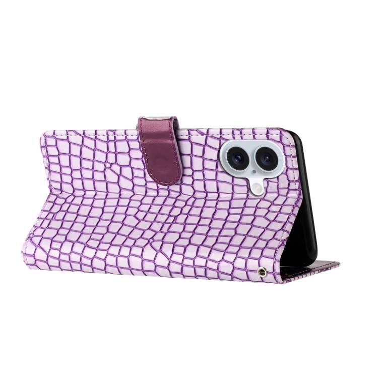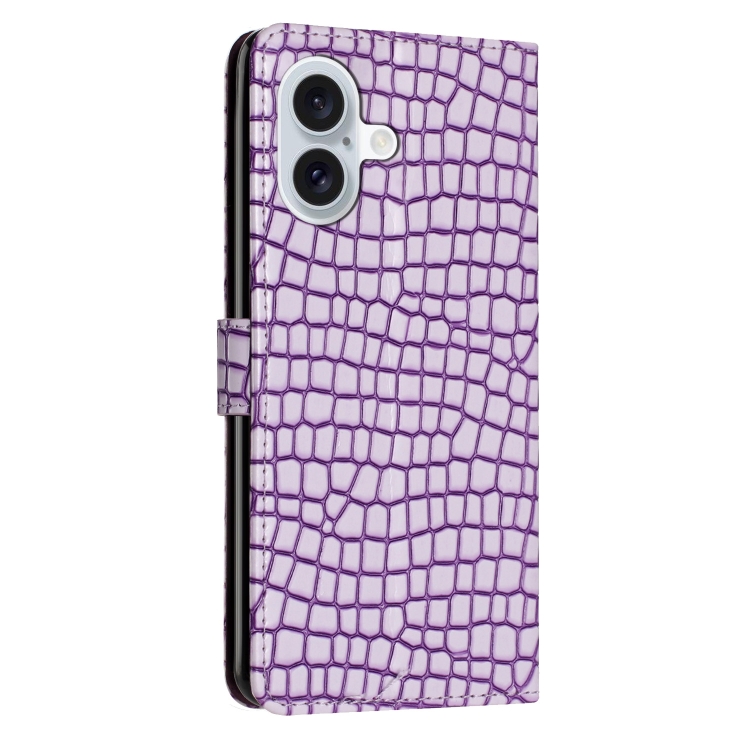 Funda de Piel con Tapa Horizontal con Textura de Cocodrilo para iPhone 16 Plus (Morado)