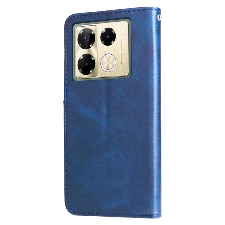 Funda de Piel Textura Becerro con Cremallera para Infinix Note 40 Pro 4G/5G/Pro+ (Azul)