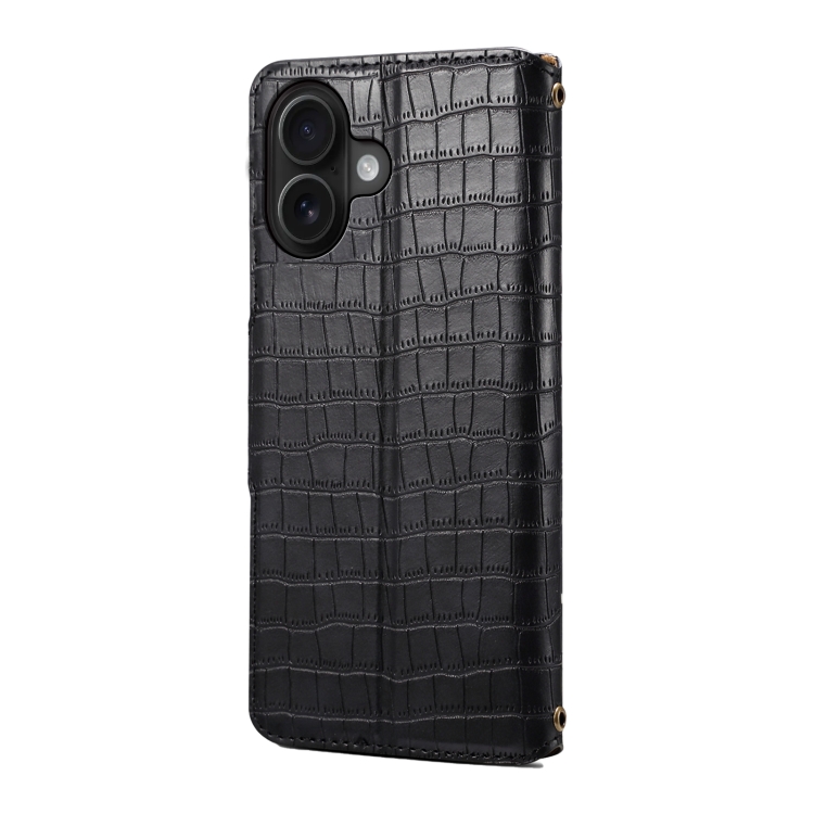 Funda de Piel para iPhone 16 Textura de Cocodrilo Borde Aceitado (Negra)