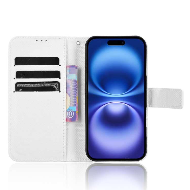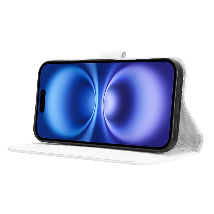 Funda de Piel para iPhone 16 Plus Textura de Diamante (Blanca)