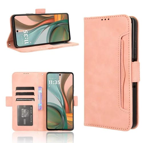 Funda de Piel con Textura de Becerro y Ranuras para Tarjetas Motorola Moto G75 5G (Rosa)