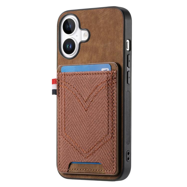 Funda de piel con textura vaquera para iPhone 17 con ranura para tarjetas (marrón)