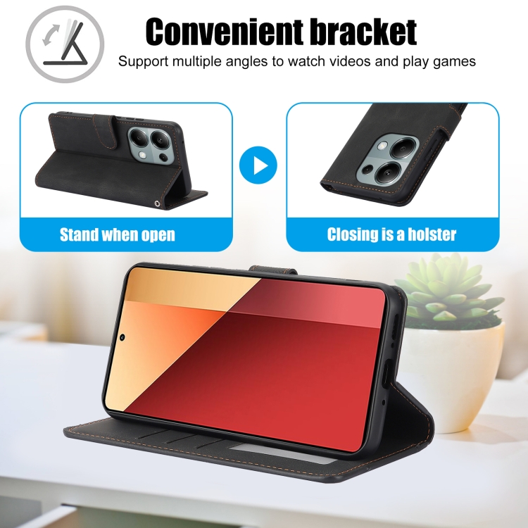 Funda de Piel de Becerro con Textura de Piel de Becerro y Diseño de Fantasía Global para Redmi Note 13 Pro 5G (Negra)
