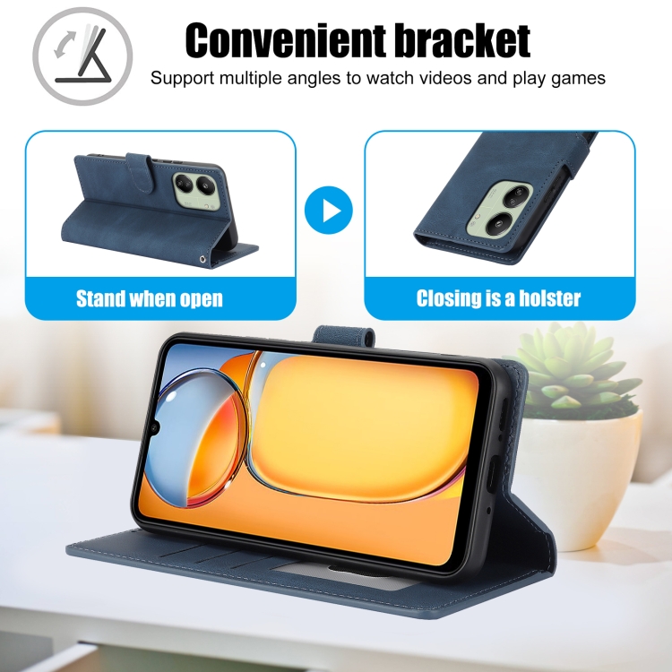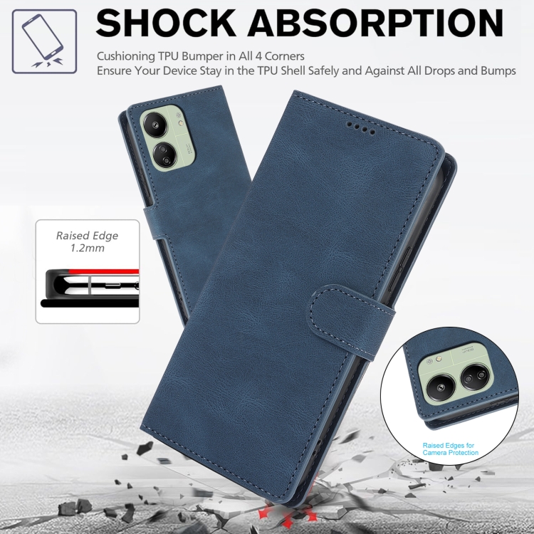 Funda de Piel de Becerro con Textura de Piel de Becerro y Tacto Fantástico para Redmi 13C 4G (Azul)