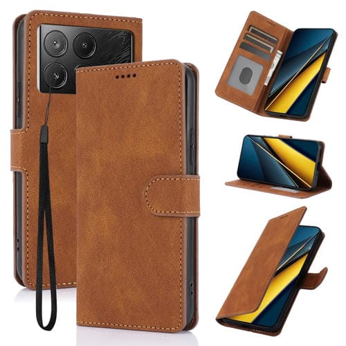 Funda de Piel de Becerro con Textura de Piel de Fantasía para Xiaomi Poco X6 Pro 5G (Marrón)