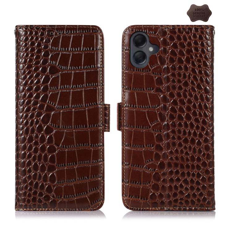 Funda de piel de vacuno con capa superior de cocodrilo para Samsung Galaxy A07 5G (marrón)